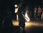 触番の出発を終えた宮司は、 二本の松明に先導され拝殿前の石段まで神輿をお迎えする。